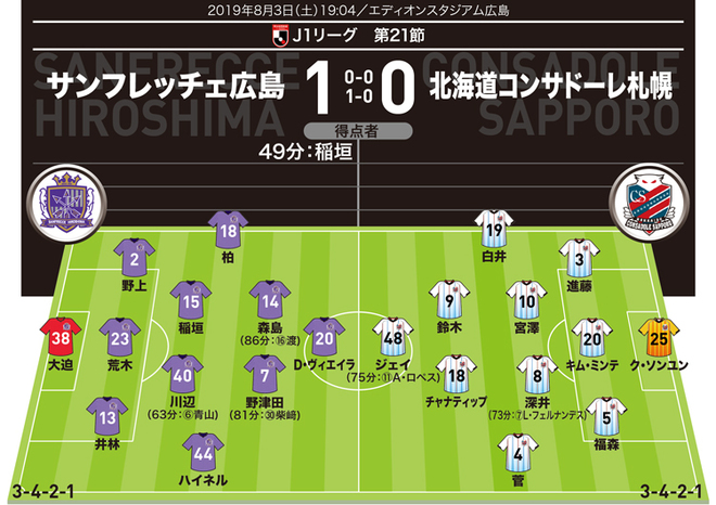 J1採点 寸評 広島1 0札幌 Momは 中2日 の苦境を救った広島ボランチ 札幌ミシャ監督 負けてはいけないゲームだった サッカー ダイジェストweb